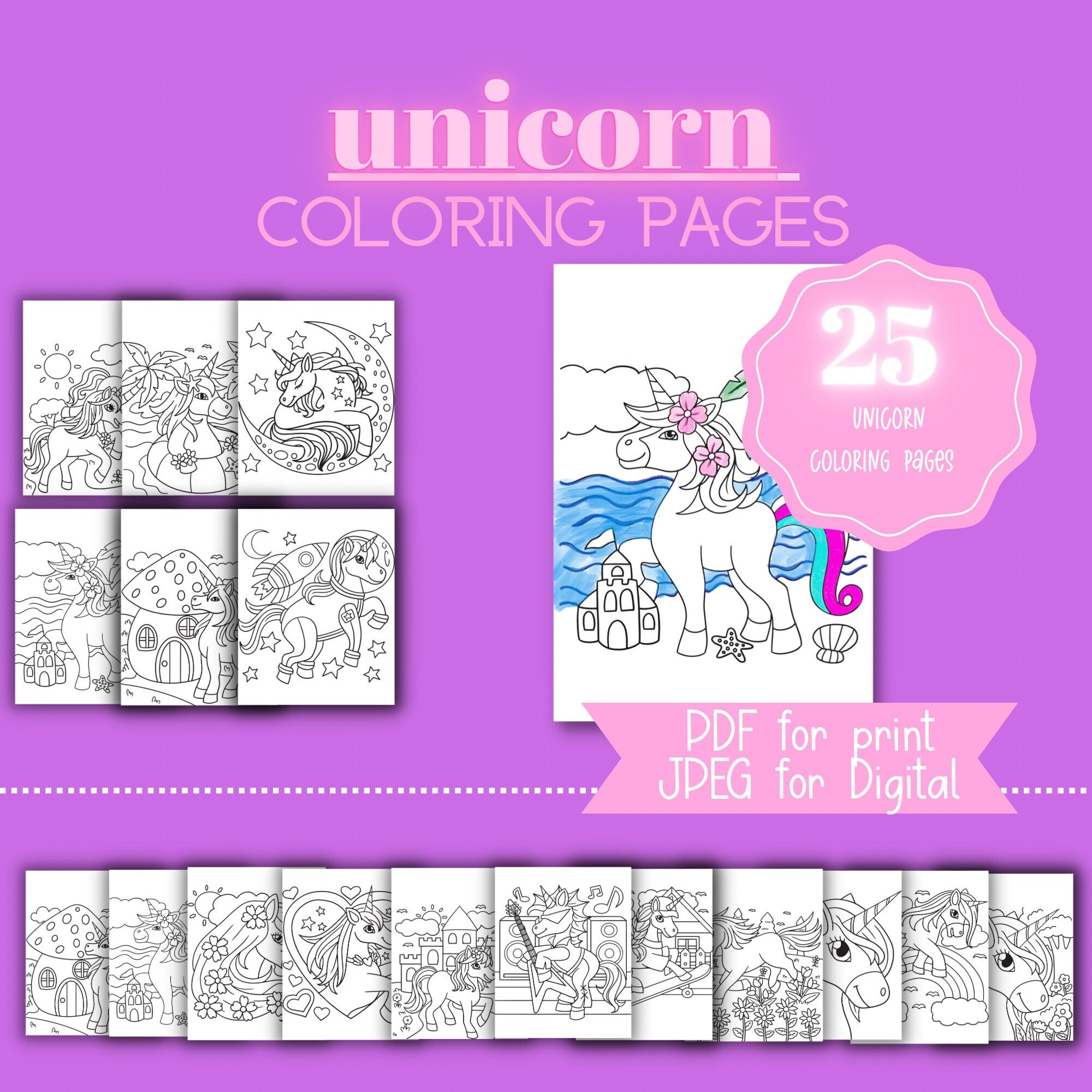 Unicorn Printable Coloring Pages Coloring Pages For Girls Etsy